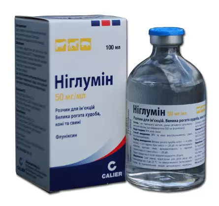 Фармакологічна діяНіглумін відноситься до нестероїдних протизапальних препаратів. Флюніксін – діюча речовина Ніглюміна – має протизапальну, знеболювальну, антитоксичну та жарознижувальну дію. Флюніксін діє як неселективний інгібітор циклооксигенази (ЦОГ1 і ЦОГ2), запобігаючи перехід арахідонової кислоти в простагландини, які беруть участь у розвитку запального процесу. При парентеральному введенні флюніксін швидко всмоктується і проникає в усі органи і тканини, максимальна концентрація в крові досягається через 0,5-2 години. Незважаючи на короткий період напіввиведення (у середньому 4-5 год), препарат кумулює в вогнищі запалення, забезпечуючи терапевтичний ефект протягом 24 годин. Флюніксін в значній мірі зв’язується з білками плазми.
