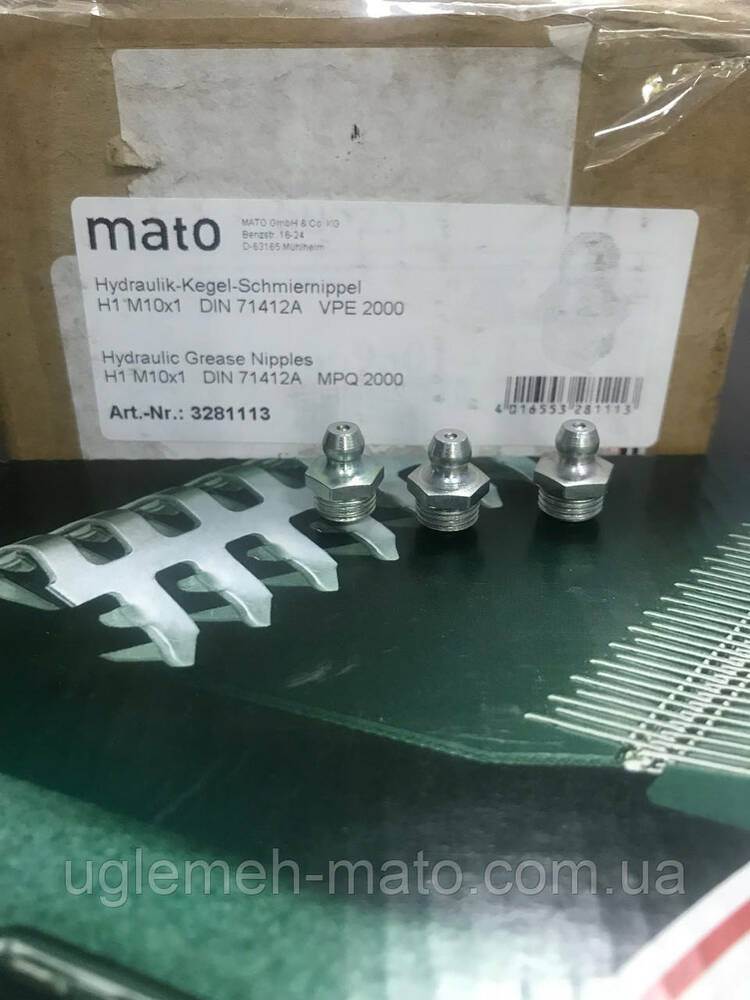 Ніпель мастильний гідравлічний, кульковий прямий DIN71412A H1 M10*1 МАТО (Німеччина)