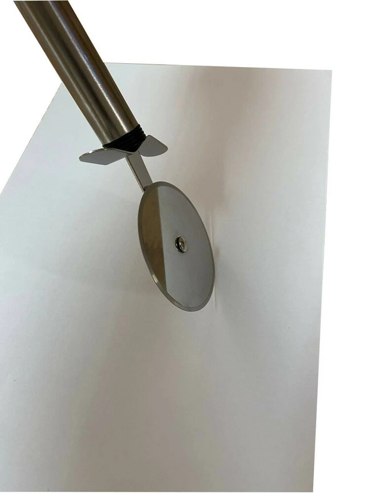 Ніж для різання вощини "Round waх knife" виготовлений із харчової нержавіючої сталі, при нарізанні вощини диск обертається, за рахунок чого до нього не прилипає вощина. Ніж складається з ріжучого диска діаметром 66 мм із гостро заточеним краєм. Диск із нержавіючої сталі кріпиться на ручку таким чином, що може обертатися. Диск ножа, що обертається, з легкістю входить у вощину і розрізає її без труднощів. Саме завдяки такій конструкції до ножа не прилипає вощина. Для виключення зісковзування руки передбачено захисну планку.