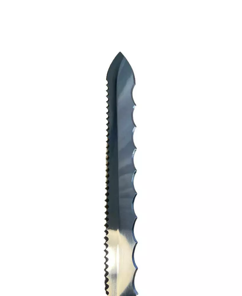 Ніж «INTERTOOL» довжиною 420 мм дозволяє легко та швидко роздруковувати усі види рамок, які масово використовують українські бджолярі (Дадан, Рута, магазинна, українська рамки). Леза ножа виготовлені з нержавіючої сталі і мають двострунне заточування (зубчасте і хвилеподібне). Двостороннє заточування не затуплюється та має збільшений ресурс. З одного боку розташовані зубці 5 мм, з іншого – 20 мм.