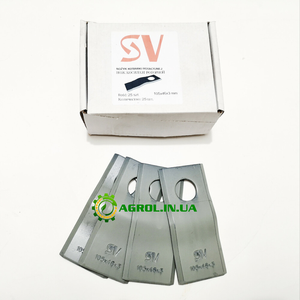 Нож косилки "SV" 105х46х3 отверстие 19мм. Крашенный оригинал.