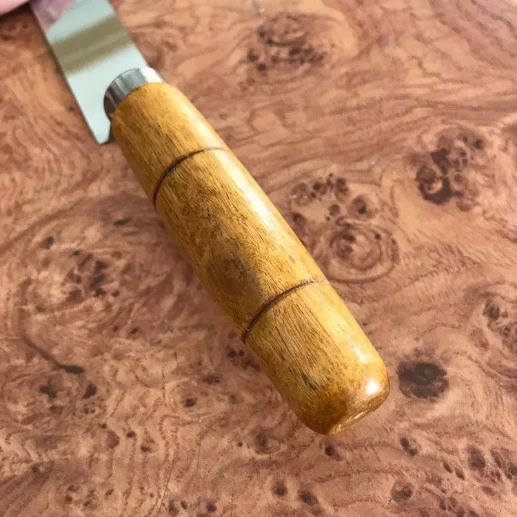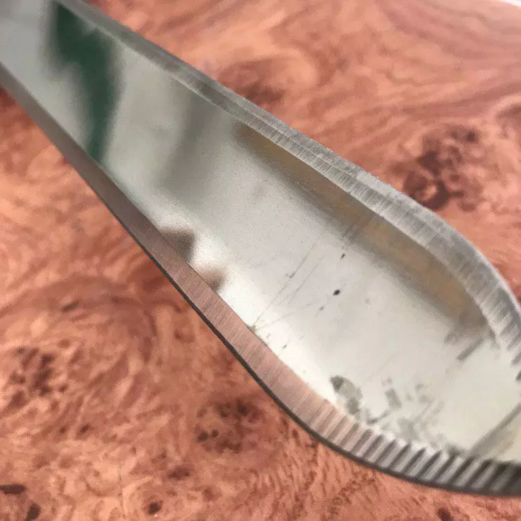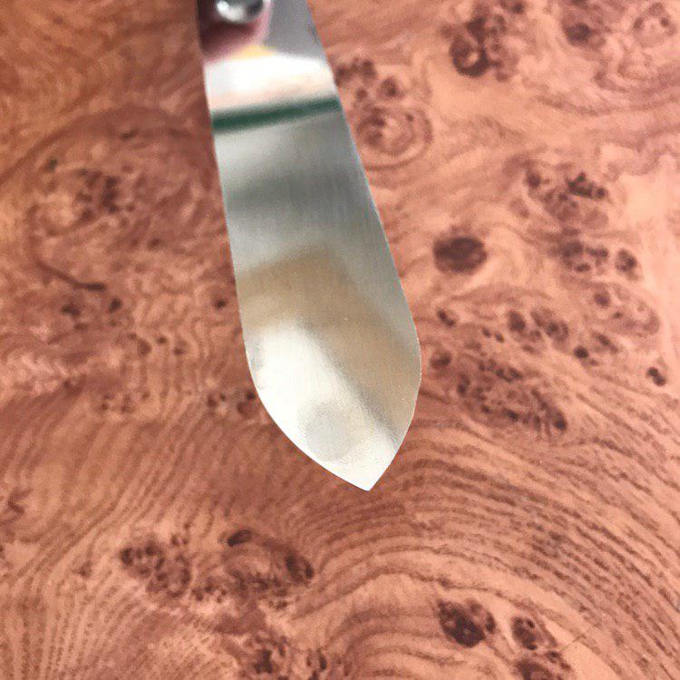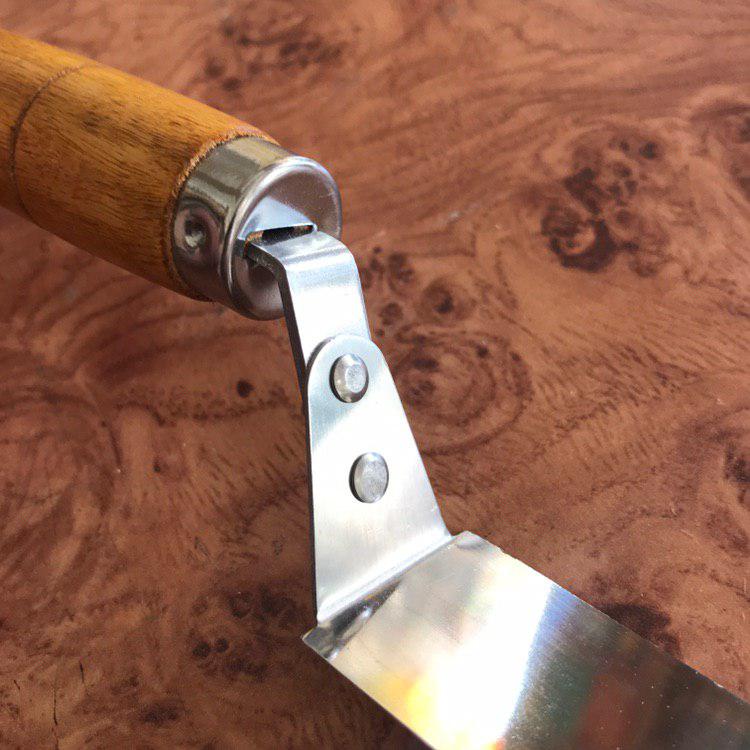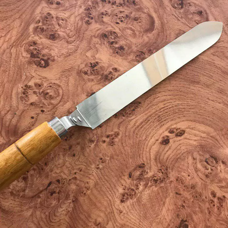 Ніж пасічний виготовляється нержавіючої сталі. Відрізняється звуженою формою леза, що полегшує роботу та зручність маневрування. Система кріплення гарантує міцність леза в точках згибу, достатню товщину кронштейна та міцність посадки ручки. Такий ніж має чудові ріжучі характеристики, добре заточується.