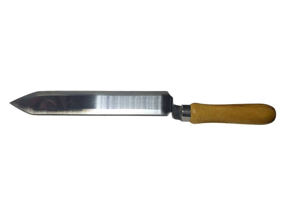 Ніж пасічний L195 мм – призначений для розпечатки медових стільників перед відкачуванням, для вирізання шматочків стільників і зрізання кришечок трутнеевих осередків. Виконаний з листової нержавіючої сталі, ручка з деревини листяних порід.. Нова система кріплення гарантує міцність леза в точках згину, достатню товщину кронштейна і міцність посадки ручки. Дуже простий і зручний у використанні. Значно підвищує продуктивність роботи бджоляра.