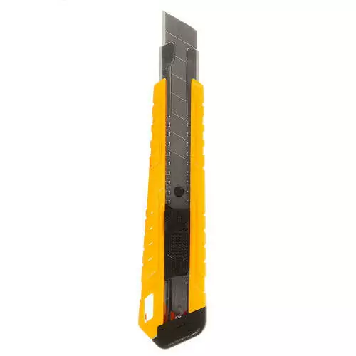 Міцний корпус із металевими напрямними гарантує тривалий термін служби та високу стійкість до навантажень. Плоска натискна клавіша дозволяє зручно фіксувати лезо в потрібному положенні, що забезпечує безпеку та точність роботи.