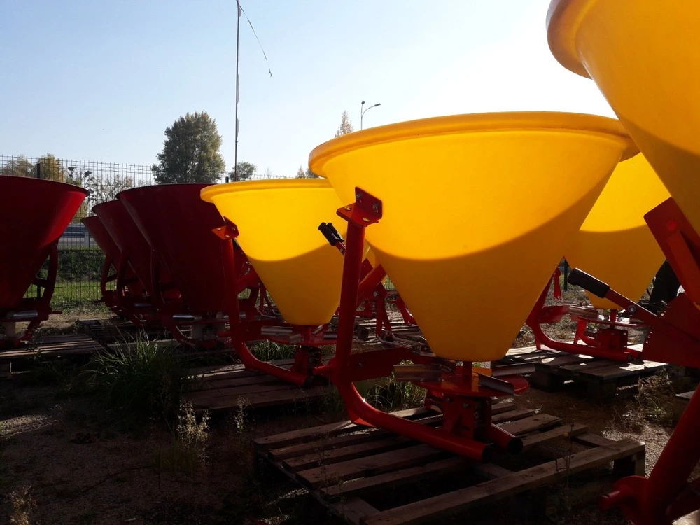 Разбрасыватель минеральных удобрений (Польша) тракторный навесной применяется для поверхностного внесения минеральных удобрений в гранулированном виде, а также для посева зерновых культур и подкормки в период вегитации, что влияет на урожайность. Загрузка машины производится в полевых условиях. Доза внесения удобрений зависит от регулирования механизма управления дозирующими заслонками и рабочей скорости движения