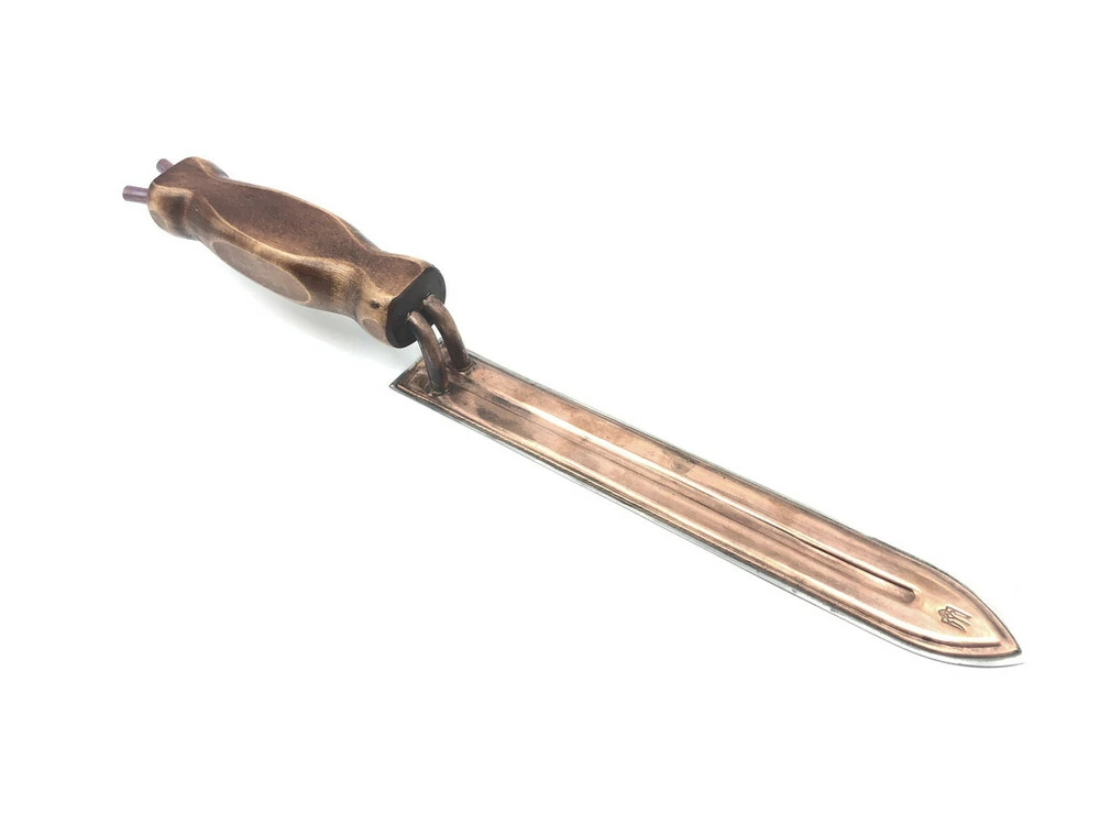Лезо ножа виготовлене із сталі 65г, з мідною