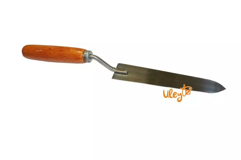 Ніж пасічний Трапеція 200 мм, призначений для  распечатывания медовых сотов перед откачкой, для вырезания кусочков сот и срезания крышечек трутнеевых ячеек. Выполнен из листовой нержавеющей стали, ручка из древесины лиственных пород. Основное отличие от обычных ножей, это тонкое лезвие — 0,9 мм, и новое крепление кронштейна ручки. Нож трапеция имеет отличные режущие характеристики, хорошо затачивается, удобен в работе. Новая система крепления гарантирует прочность лезвия в точках сгиба, достаточную толщину кронштейна и прочность посадки ручки. Очень прост и удобен в использовании. Значительно повышает продуктивность работы пчеловода.