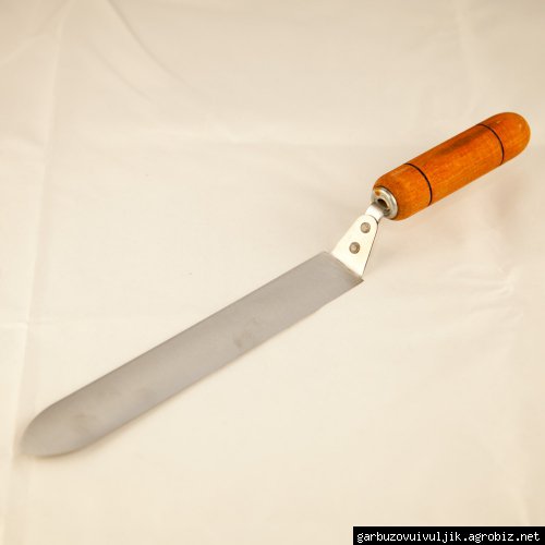 Ніж пасічний виготовляється з вуглецевої, загартованої нержавіючої сталі. Відрізняється звуженою та вкороченою формою леза, що полегшує роботу та зручність маневрування. Нова система кріплення гарантує міцність леза в точках згибу, достатню товщину кронштейна та міцність посадки ручки. Такий ніж має чудові ріжучі характеристики, добре заточується.