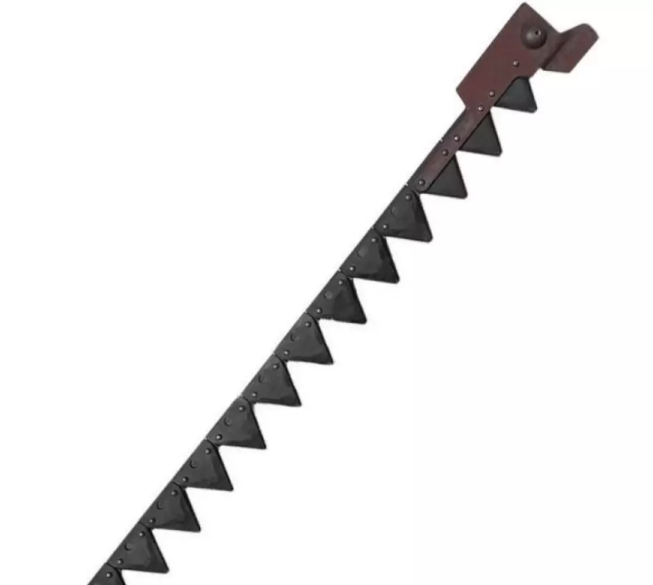 Ніж Р232.10.000 в зборі 5м (Коса) являє собою збірний вузол складається з таких основних запчастин як головка ножа, смуга, прикріплений до смуги сегмент. Загальна довжина ножа залежить від ширини жатки застосовуваної на комбайні нива, можуть бути два варіанти 4-ЬОХ та 5-ТИ метрові. В даному випадку ми розглядаємо косу довжиною 5 метрів. Звертаємо вашу увагу що можуть бути різні виробники ножів, які можуть використовувати різну якість сегментів, від цього природно буде залежати і вартість. Ми продаємо тільки якісні коси з використанням сегментів з пружинної сталі 65Г. На одному комбайні встановлюється всього 1 нож-коса в жниварці.