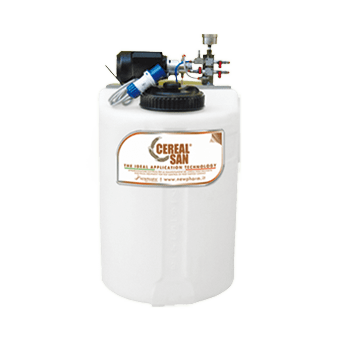 Модель ЦЕРЕАЛ Сан (CEREAL San) - пристрій класичної компоновки: ємкість на 100 л, (за запитом можлива комплектація баками 500 л або 1000 л) у поєднанні з магнітним насосом, системою регулювання тиску і комплектом форсунок з трубками. Одночасно можна задіяти до 3 (трьох) ліній обробки.