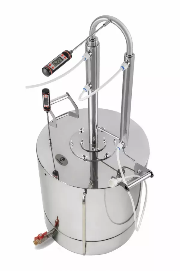 Представлений самогонний апарат Старт 37 л. дає можливість контролювати процес дистиляції за допомогою термометрів, а безпека процедури забезпечує спеціальний аварійний клапан. Незважаючи на просту конструкцію (якщо порівнювати з обладнанням для професіоналів), цей дистилятор виконує всі передбачені виробником функції. Компактний агрегат дозволяє проводити перегонку браги навіть у невеликій кухні вашої квартири. Насадки Панченкова забезпечують додаткове очищення самогону від шкідливих фракцій.