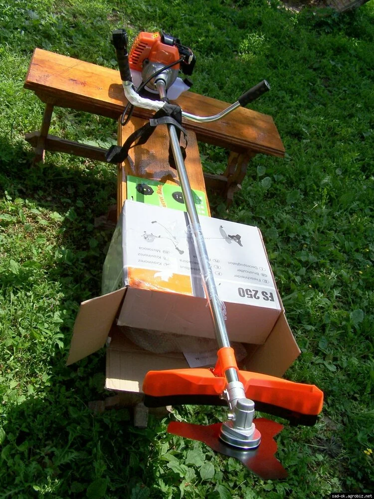 В комплекте также идет инструмент для регулировки и обслуживания, мерная бутылочка для приготовления смеси, чехол для шины. Укомплектована зубчатым упором.