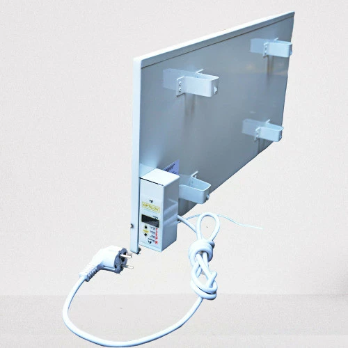 Указанный тип обогревателя комплектуется проводом и встроенным электронным терморегулятором-программатором. Терморегулятор имеет два датчика: на температуру нагрева панели и на температуру нагрева воздуха в помещении. При достижении одной из заданных температур, терморегулятор отсекает панель обогрева от сети, что способствует экономичной работе обогревателя. (Пользователи самостоятельно выставляют, при какой температуре помещения, терморегулятор отключит панель).