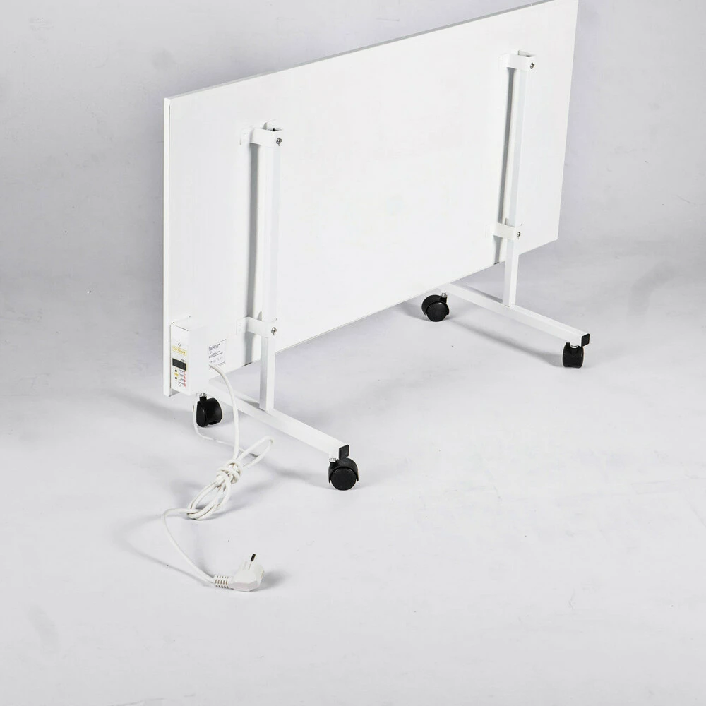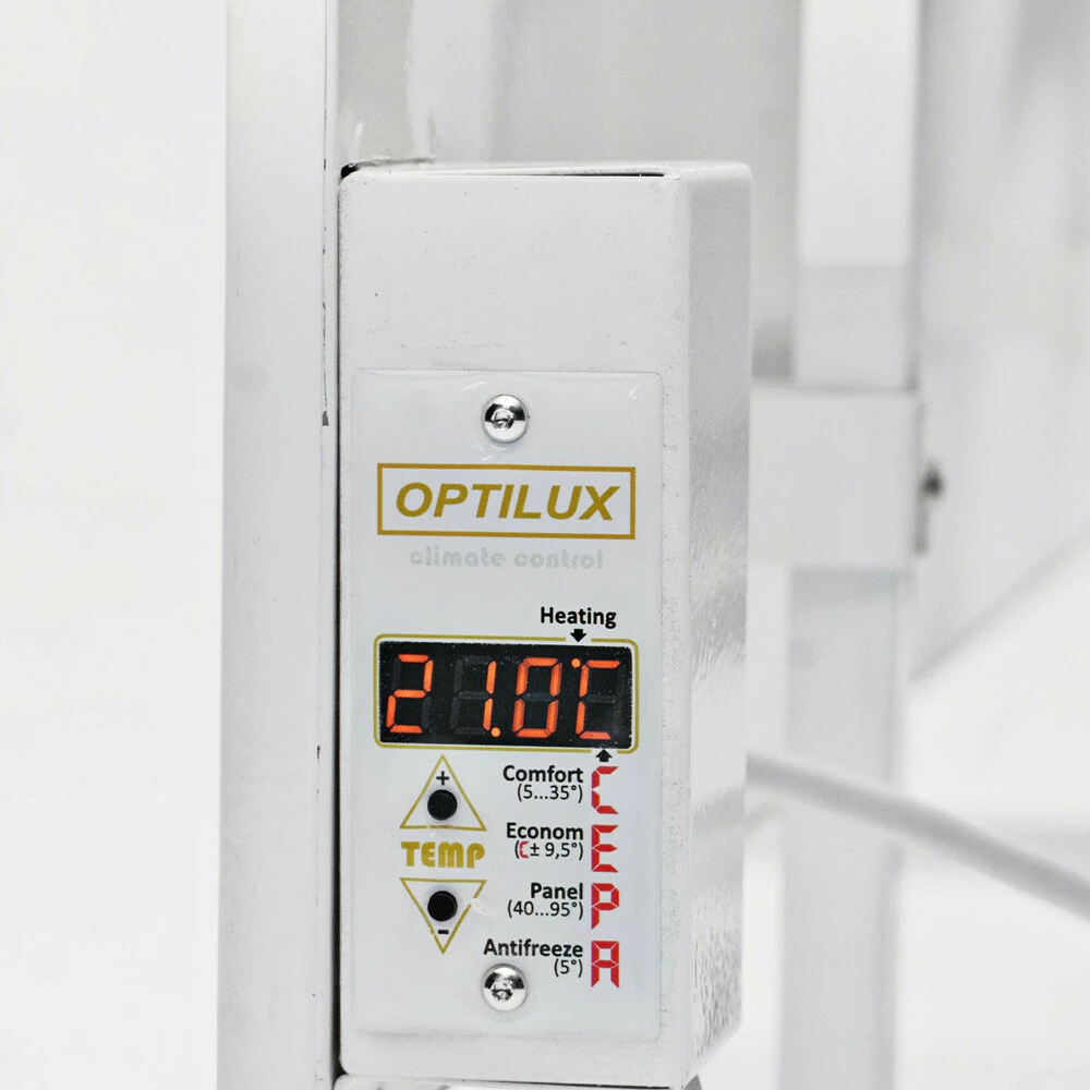 Указанный тип обогревателя комплектуется проводом и встроенным электронным терморегулятором-программатором. Терморегулятор имеет два датчика: на температуру нагрева панели и на температуру нагрева воздуха в помещении. При достижении одной из заданных температур, терморегулятор отсекает панель обогрева от сети, что способствует экономичной работе обогревателя. (Пользователи самостоятельно выставляют, при какой температуре помещения, терморегулятор отключит панель).