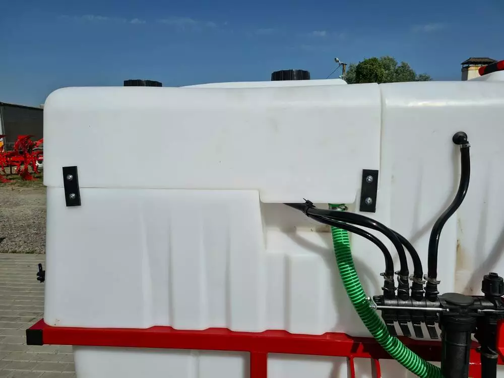Форма бака має плоску форму і забезпечує його повне спорожнення при безперебійній роботі насоса. Повна місткість бака 1225 л, що включає в себе 1000 л основний бак 100 л бак для промивання системи, який також можна використовувати як і основний бак (з боку обприскувача встановлюється 3-х ходовий кран) і рукомийник на 25 літрів.