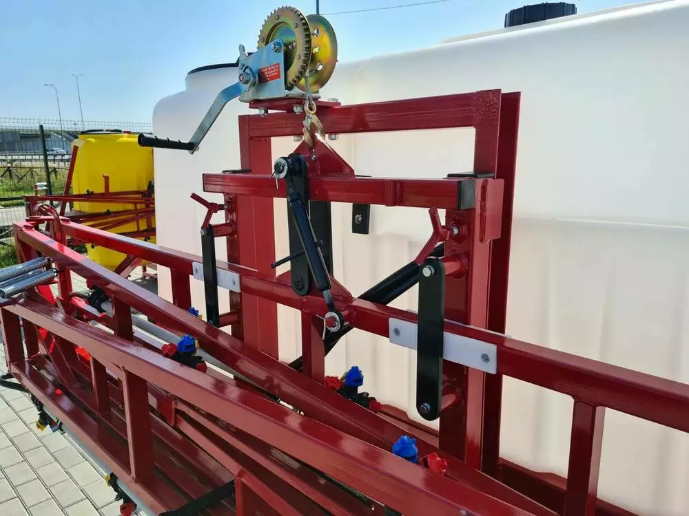 Штанга посиленої конструкції нової розробки, має маятникову систему, що здійснюється з допомогою повідків та талрепу. На штанзі в місцях можливого її стирання встановлені пластини із матеріалу, який має наднизький коефіцієнт тертя. Для навіски штанги використовується швелер товщиною 6 мм, що дає надійну роботу обприскувача і штанги в робочому положенні. Піднімання і опускання штанги здійснюється за допомогою потужної і надійної черв»ячної лебідки вантажопідйомність якої складає до 900 кг, при якій не можливо самовільне її опускання