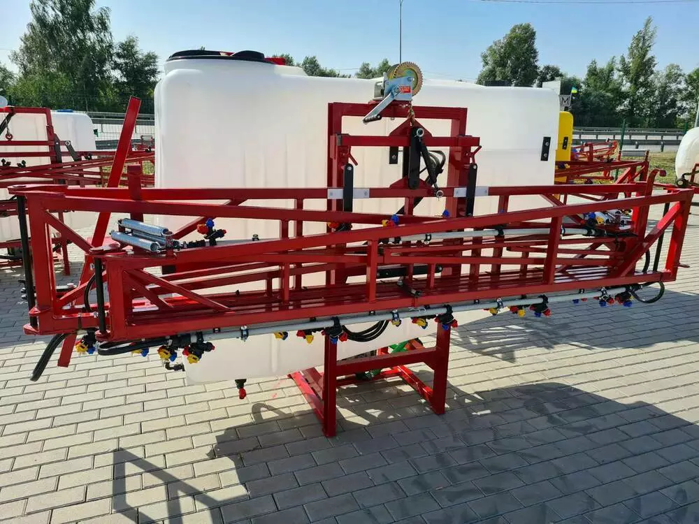 Обприскувач навісний серії ОНШ (К) - 1000 л, штанга 14 або 16 м посиленої конструкції, з баком для промивки системи, форсунки встановлені на колектор. Карданний вал входить в вартість обприскувача