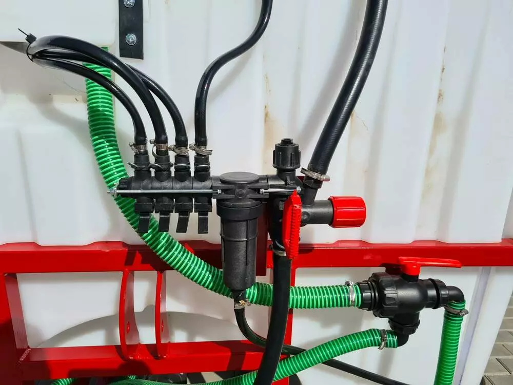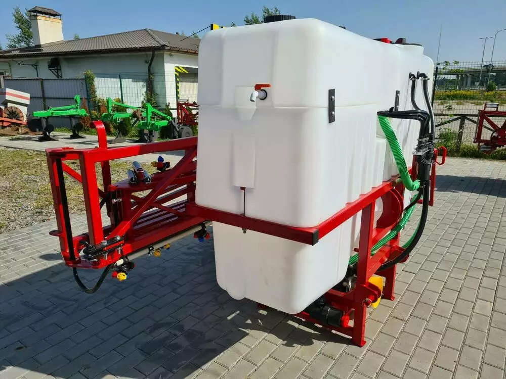 Форма бака має плоску форму і забезпечує його повне спорожнення при безперебійній роботі насоса. Повна місткість бака 1225 л, що включає в себе 1000 л основний бак 100 л бак для промивання системи, який також можна використовувати як і основний бак (з боку обприскувача встановлюється 3-х ходовий кран) і рукомийник на 25 літрів.