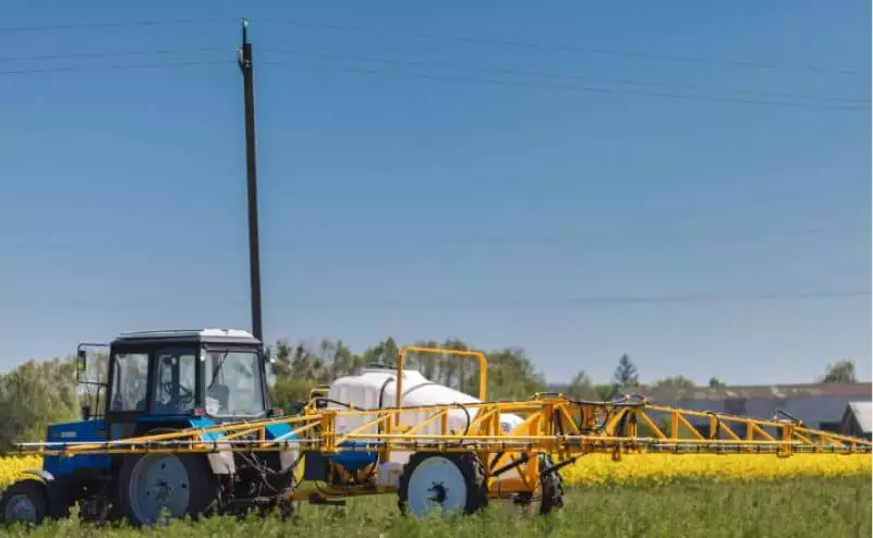 Обприскувач із механізмом захисту штанги при зіткненні з перешкодою допускає відхилення штанги у горизонтальній площині. Після проходження перешкоди штанга повертається у вихідне положення.