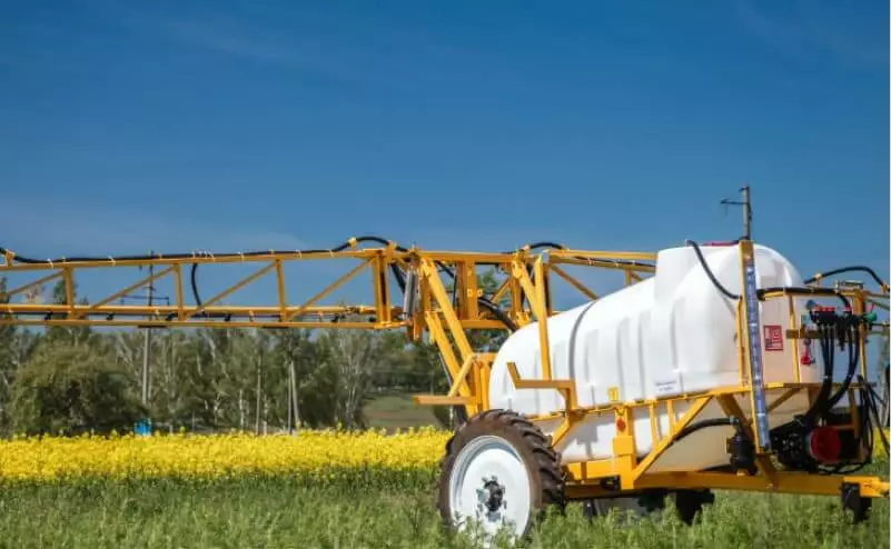 Обприскувач із механізмом захисту штанги при зіткненні з перешкодою допускає відхилення штанги у горизонтальній площині. Після проходження перешкоди штанга повертається у вихідне положення.