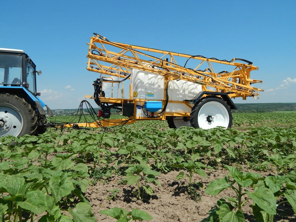 Причіпний обприскувач ТИТАН-3000-24. Об'єм бака 3000л, ширина захвату штанги 24м. Гідравлічна штанга об'ємної конструкції довжиною 24 метри з маятниковим механізмом стабілізації та гідромеханічною системою гасіння коливань. Виробництво штанги та рами включає піскоструминну обробку з подальшим порошковим фарбуванням для надійного захисту від корозії.