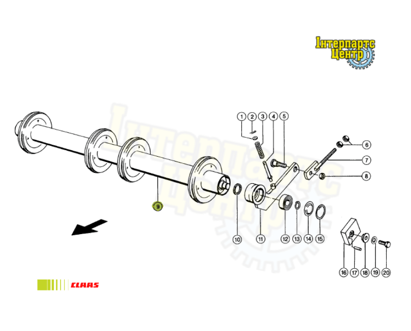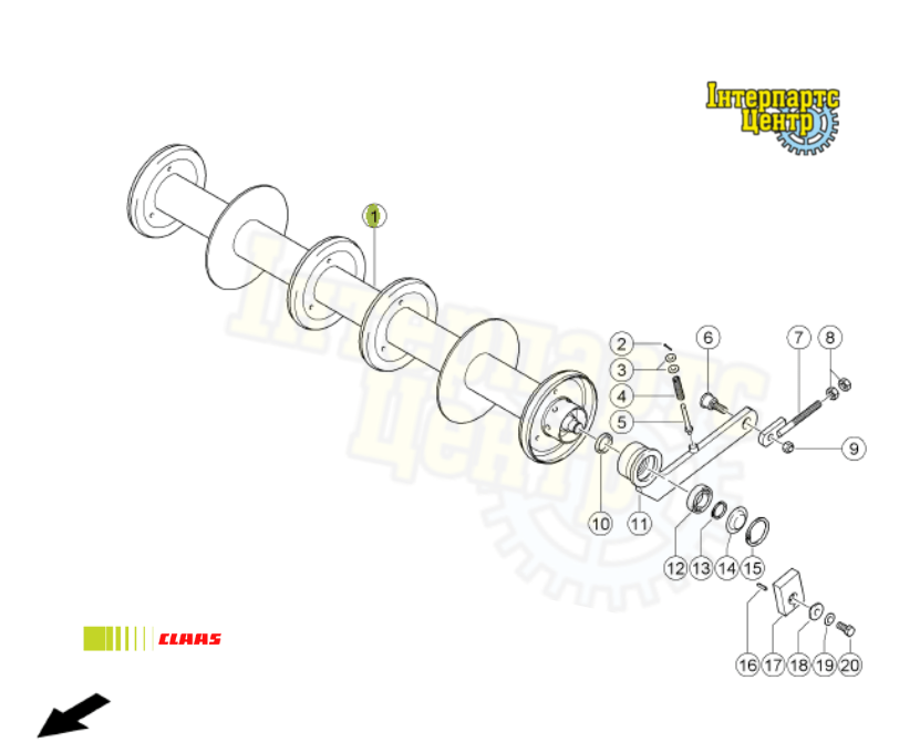 Обвідний валик похилого транспортера, вал ведений похилою камерою зернозбиральних комбайнів Claas Lexion. Розміри: 1564x290x290 мм. Вага: 41,8 кг.