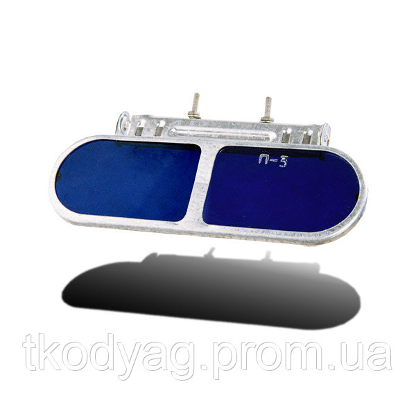 Очки козырьковые плавильщика К1П3, П4 с минеральными защитными фильтрами-стеклами в жестком металлическом стеклодержателе. Имеют поворотное устройство и кронштейн для фиксации на защитный головной убор или лицевой щиток.