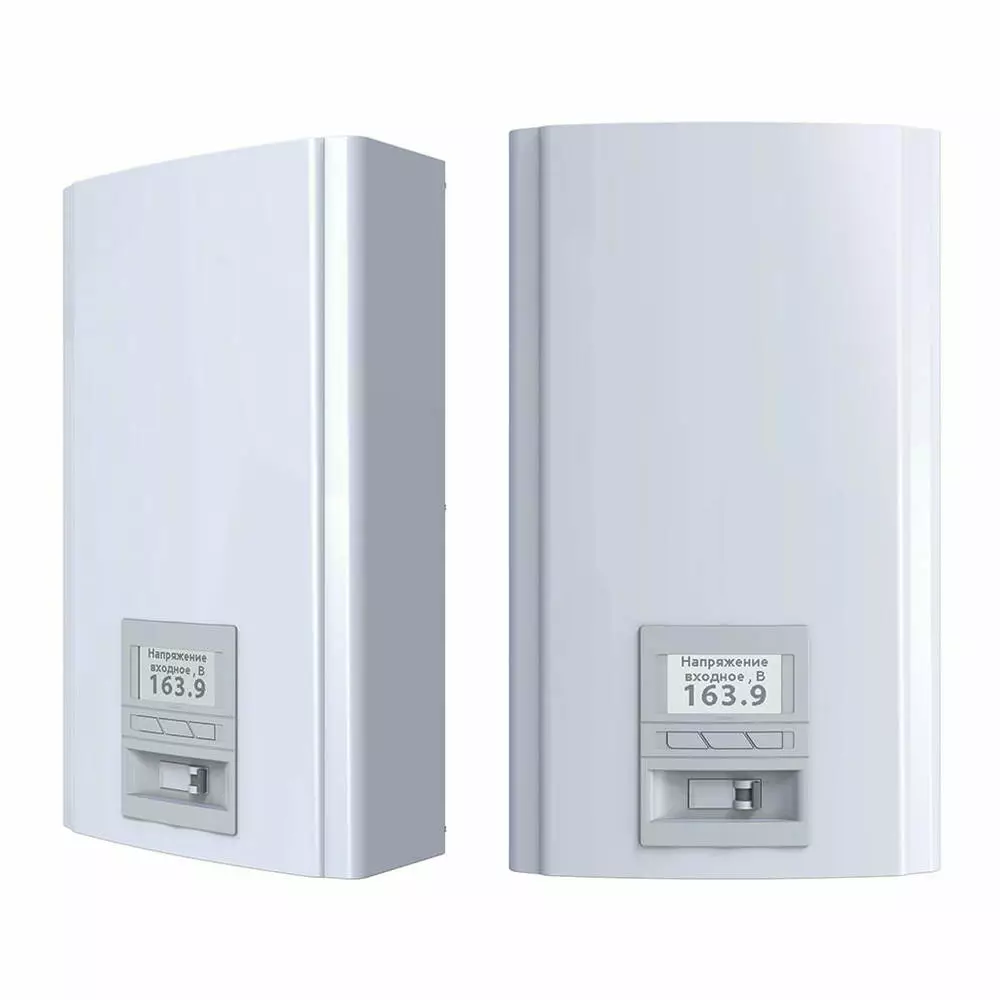 Функціонально Елекс КілоГерц У 1-50 є безступінчастим стабілізатором напруги, що складається з двообмотувального вольтододаткового трансформатора, високочастотного фільтра, силового каскаду, виконаного на сучасних польових транзисторах і схеми управління яка забезпечує функціонування алгоритмів стабілізатора. Діапазон роботи стабілізатора напруги ЕЛЕКС КІЛОГЕРЦ У 1-50 Однофазний стабілізатор напруги ЕЛЕКС КІЛОГЕРЦ У 1-50 призначений для роботи в електричних мережах з коливаннями напруги від 150 до 285 В. У цьому діапазоні апарат гарантовано видає на виході напруга в межах 250 . модуляції (ШІМ). При напрузі вище 285 або нижче 150 В стабілізатор продовжить роботу, але з похибкою більше, ніж 220 ± 0.5%. Стабілізатор ЕЛЕКС КІЛОГЕРЦ У 1-50 розрахований на робочий струм 50А, що відповідає потужності 11 кВА/кВт Особливості моделі ЕЛЕКС КІЛОГЕРЦ У 1-50 До особливостей даного стабілізатора можна віднести інформативний LCD-екран, пам'ять подій (байпас), безшумну роботу за рахунок використання як силових ключів польових транзисторів, тороїдального трансформатора та інтелектуальну систему охолодження. Стабілізатор напруги ЕЛЕКС КІЛОГЕРЦ У 1-50 має широкий діапазон роботи та пороги його відключення 100 В та 310 В. Швидкість реакції на зміну вхідної напруги до 1мс дозволяє працювати з найчутливішим та високоточним обладнанням. З метою протидії небезпечним навантаженням у стабілізатор введено алгоритм автоматичного струмообмеження, а для вимірювання струмів використовуються спеціальні датчики. При необхідності отримати на виході стабілізатора напругу відмінну від 220В в ЕЛЕКС КІЛОГЕРЦЬ У 1-50 є функція регулювання даного значення в діапазоні 200-230В. Стабілізатор ЕЛЕКС КІЛОГЕРЦ У 1-50 має можливість ручного підстроювання нижнього порогу відключення (60-135В). Ця функція потрібна для навантаження з високими пусковими струмами, при запуску якої можливе сильне просідання напруги та аварійне відключення стабілізатора. При активації даної опції стабілізатор протягом хвилини дасть можливість запустити будь-який двигун або насос навіть при просіданні напруги до 60В в мережі. Встановлення та підключення стабілізатора ЕЛЕКС КІЛОГЕРЦ У 1-50 Встановлювати та експлуатувати стабілізатор мережі ЕЛЕКС КІЛОГЕРЦ У 1-50 рекомендується в сухих та опалювальних приміщеннях. Настінну установку рекомендується проводити у вертикальному положенні (вентиляторами догори), залишивши зверху та знизу 10-15 см для охолодження. Підключення здійснюється до існуючої проводки через клемну колодку. Стабілізатори серії КілоГерц У 1-50 характеризуються такими ключовими особливостями: висока точність стабілізації вихідної напруги (±0,5%); двопроцесорна технологія на ARM-мікроконтролерах, застосовано новітній процесор фірми STmicroelectronics серії STM32G4 з інтегрованими аналоговими елементами; високонадійне керування ключами на базі сучасних ізольованих драйверів із незалежним трансформаторним живленням; безшумний силовий тороїдальний трансформатор; коригує форму напруги, покращуючи його гармонійний склад; низьке власне споживання електроенергії на холостому ході; застосування високоефективного імпульсного блоку живлення; плавне інтелектуальне управління вентиляторами примусового охолодження дозволяє досягти мінімальних енерговитрат на охолодження, збільшити термін служби вентиляторів та