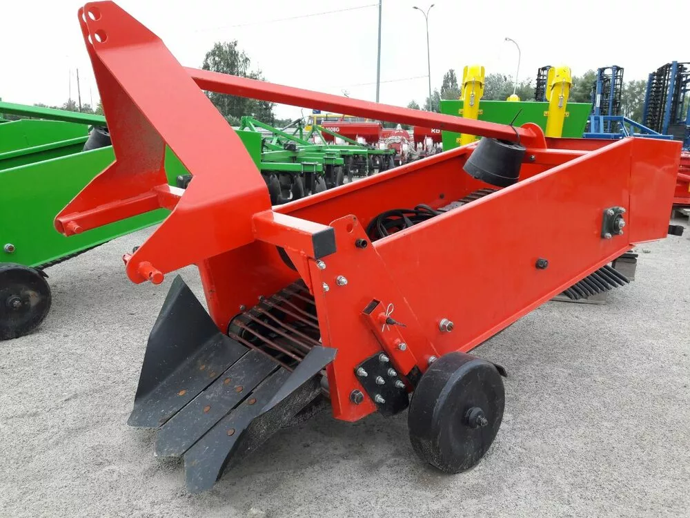 Картофелекопалка 1-рядная Wirax Польского производства предназначена для выкапывания картофеля. Надежная в работе, удобная в обслуживании, несложная по конструкции машина. Картофелекопатель Wirax предназначен для выкапывания картофеля, отделения клубней от почвы и укладывания их на поверхность поля для последующей подборки. Картофелекопатель обеспечивает возможность уборки при любых климатических условиях, а также в самых неблагоприятных погодных условиях благодаря ряду оригинальных решений: комбинированному встряхивателю полотна основного элеватора от принудительных и пассивных встряхивателей; расположению в зоне принудительных встряхиваний удерживающей гребенки; оптимальной геометрии подкапывающих лемехов