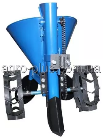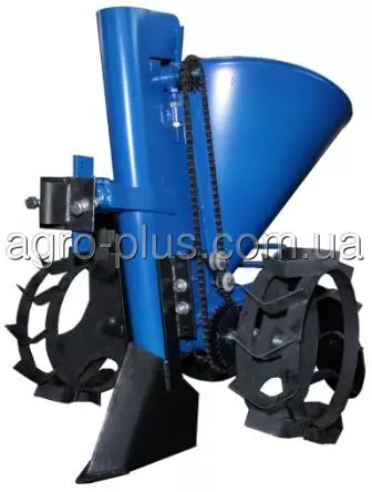 Однорядная цепная картофелесажалка предназначена для механизации посадки картофеля. Агрегатируется с мотоблоками и мототракторами мощностью от 6 л.с.