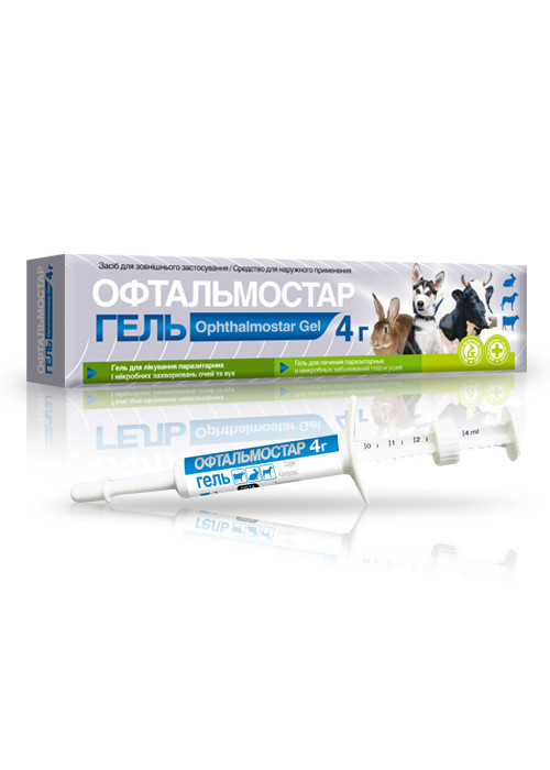 Гель Офтальмостар − комбінований препарат, до складу якого входять івермектин, тилозин тартрат і ксероформ. Протипаразитарний компонент івермектин посилює зв'язок ГАМК (гама-аміномасляної кислоти) із спеціальними рецепторами на нервових закінченнях паразитів, блокуючи нервові імпульси, що призводить до загибелі статевозрілих і личинкових стадій нематод (зокрема родини Thelaziidae), акариформних кліщів (родинDemodecidae, Psoroptidae, Sarcoptidae) і крилатих комах (Muscidae). Тилозин тартрат активний щодо багатьох видів мікроорганізмів та їх асоціацій: Mycoplasma spp., Staphylococcus spp., Streptococcus spp., Rickettsia spp. і ін. Разом з антисептиком ксероформом тилозин пригнічує розвиток вторинної інфекції. Окрім того, ксероформ володіє протизапальною та репелентною дією.