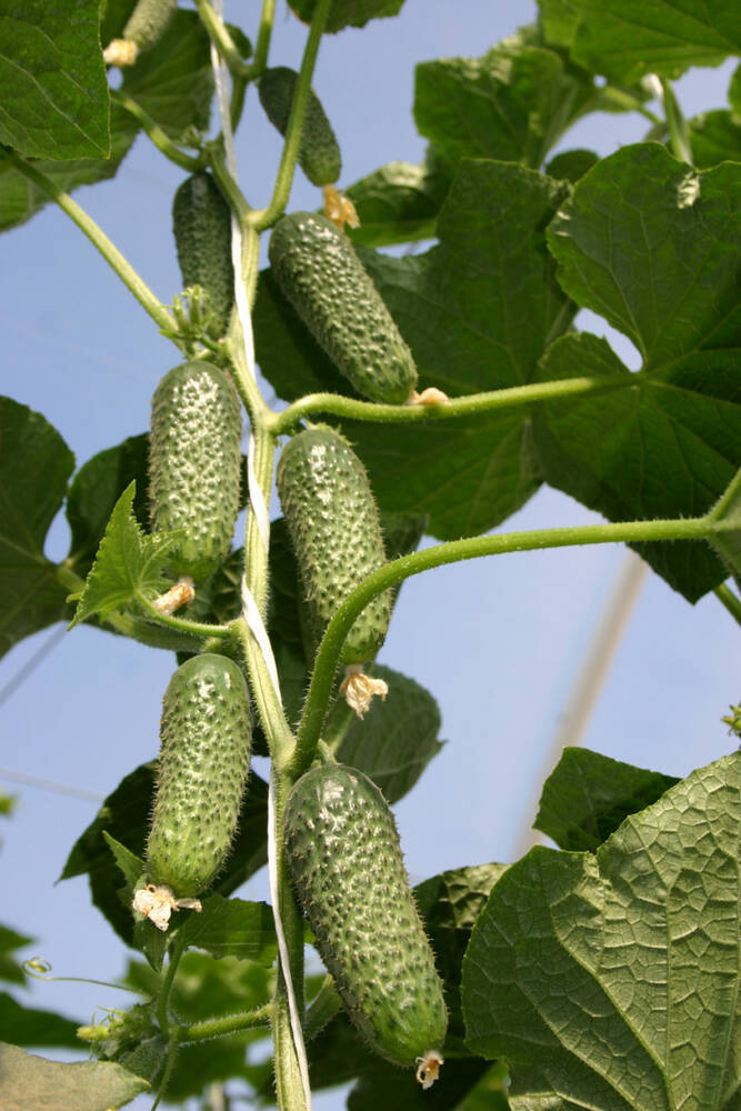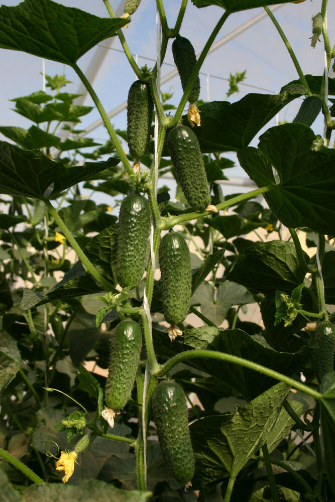 Найбільш ранньостиглий на ринку партенокарпічний огірок корнішонного типу. Рослина середньої сили росту, витримує умови заниженої освітленості. Основну масу врожаю формує на центральному стеблі. Плоди зелені, крупногорбкуваті, рівні та однорідні, довжиною 10-12 см. Відрізняються ніжним смаком при збереженні прекрасної транспортабельності.