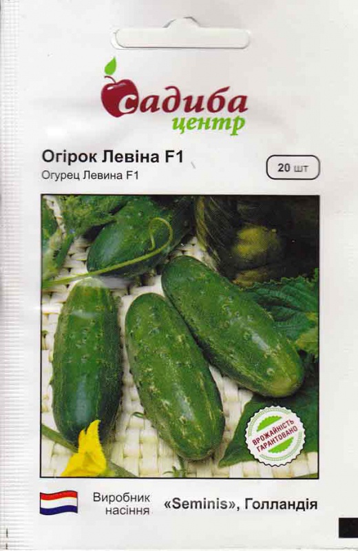 Огірок Левіна F1 - ранній бджолозапильний гібрид з переважно жіночим типом цвітіння. Вегетаційний період 45-50 днів. Огірок Левіна F1 дуже врожайний, придатний до консервування, має гарні смакові якості. Плоди світло-зелені з шипами, високої якості і однорідної форми, без гіркоти. Призначені для споживання у свіжому вигляді та переробки. Стійкий до стресів, вірусу мозаїки огірка, кладоспоріозу та борошнистої роси. Рекомендується для вирощування у відкритому грунті вертикальним і горизонтальним способами. Тривале плодоношення до вересня. Вибагливий до тепла, вологи, родючості грунту. Насіння проростає при t +12-13 ºС. Оптимальна температура для росту +25 ºС. Насіння огірка Левіна F1 представлено Компанією Семініс.