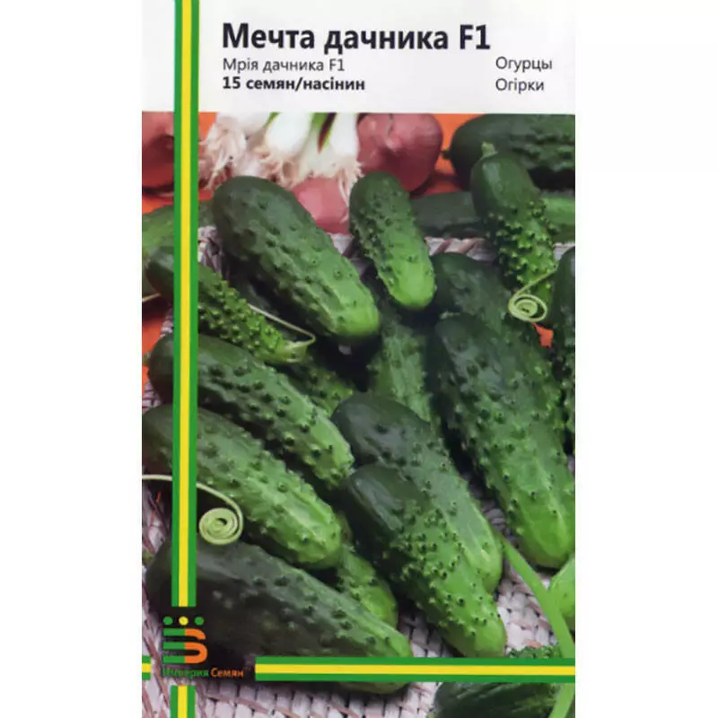 Огірок Мрія дачника – це гібрид ранньої стиглості, що вирощується як на відкритому ґрунті, так і в теплицях. Назва культури говорить сама за себе, тому що сорт невибагливий, стійкий до хвороб, при цьому має дуже смачні плоди без гіркоти, хрусткі та ароматні. Довжина їх становить 10-11 см, маса 95-105 г, великогорбчасті. Плоди огірків Мрія дачника F1 широко застосовуються для приготування салатів, консервування, маринування, соління, але краще їх вживати у свіжому вигляді якнайбільше, тому що в них міститься багато корисних для організму речовин.