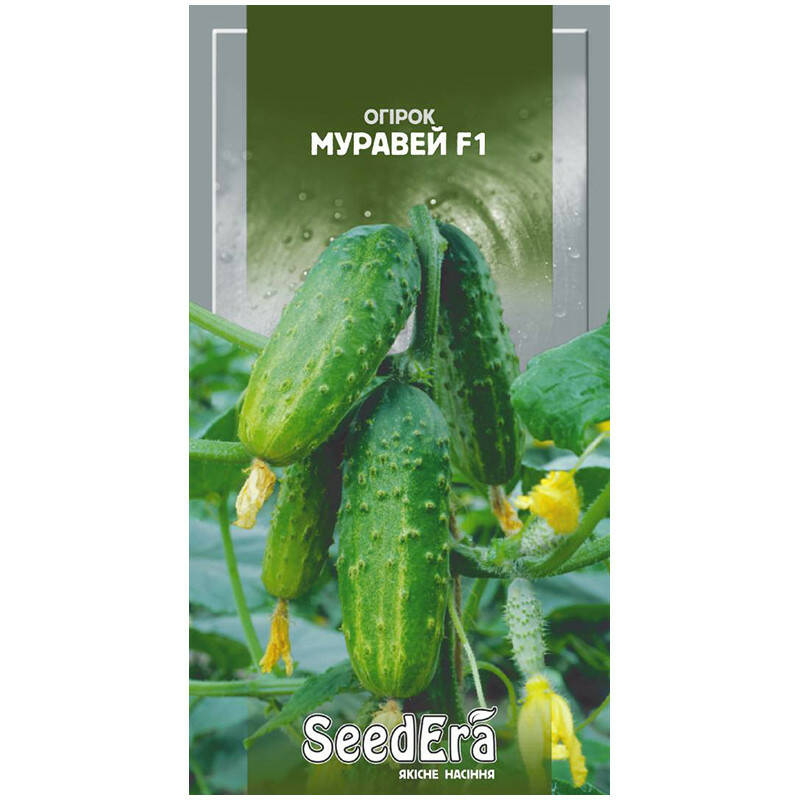Огірок Муравей F1 - ранньостиглий, світлолюбний, самозапильний гібрид для вирощування у відкритому ґрунті і плівкових теплицях. В вузлах формує від 2-3 до 5-7 зав’язей. Гібрид високих смакових якостей. Зеленці крупнобугорчаті, білошипі, довжиною 8-11 см, формуються з найнижчих вузлів за будь-яких погодних умов.Рослина вступає в плодоношення на 37-38-й день від сходів. Гібрид стійкий до борошнистої роси, вірусу огіркової мозаїки.
