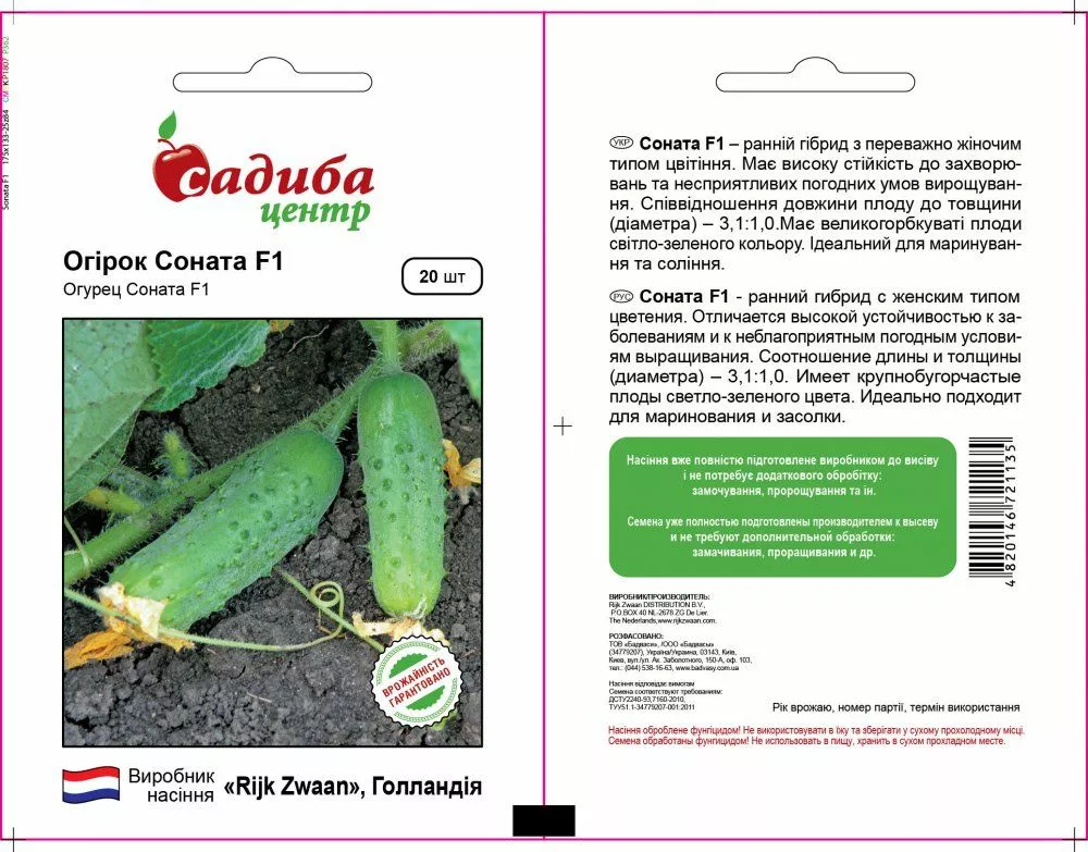 Огірок Соната F1 20 шт СЦ