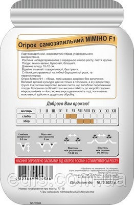 Огірок Міміно (самозапильний, без гіркоти) F1 10шт. інкрустоване насіння Яскрава PREMIUM
