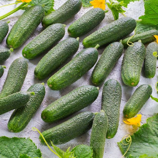 Скороспелый партенокарпический гибрид, длиной 10-12см. Отличается повышенной холодостойкостью. Можем выращиваться в открытом грунте, пленочных укрытиях и теплицах. По соотношению цена-качество не имеет себе равных, урожай на уровне лучших мировых стандартов, при значительно более низкой цене. Универсального использования. Посев на рассаду конец апреля - начало мая, высадка рассады в парники- вторая декада мая. В открытый грунт в конце мая - в начале июня. Схема посадки 40х50 см. В зависимости от погодных условий плоды срезают через 1-4 дня. Более редкие сборы ведут к снижению урожая.