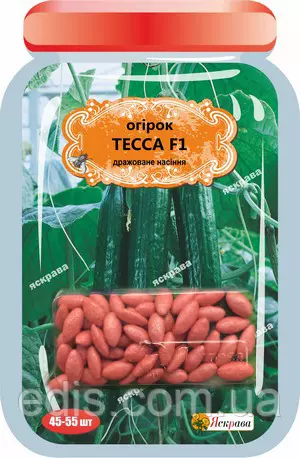 Огірок Тесса F1 (45-55шт) Ранньостиглий, у плодоношення вступає на 46-48 день після сходів. Бджолозапильний гібрид, переважно з жіночим типом цвітіння, володіє частковою партенокарпией. Самокерована розгалуження - одне з відмінних якостей гібрида . Обмеженість бічного галуження у гібрида виключає періодичне проведення робіт по пасынкованию і прищипкам. Зеленці раннього гібрида - циліндричні, слабобугорчатые, білошипі, завдовжки 14-24 см, масою 160-290 р. Врожайність становить 17-30 кг/м2. Застосовується для споживання у свіжому вигляді.