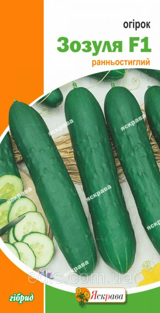 Огірок Зозуля F1 (10 насінин)Ранньостиглий, самозапильні гібрид. Плід циліндричної форми, довжиною 14-23 см, масою 150-300 р. Гібрид характеризується високою врожайністю, відносною стійкістю до борошнистої роси. Призначений для вирощування в закритому гунте. Використовується для споживання у свіжому вигляді.