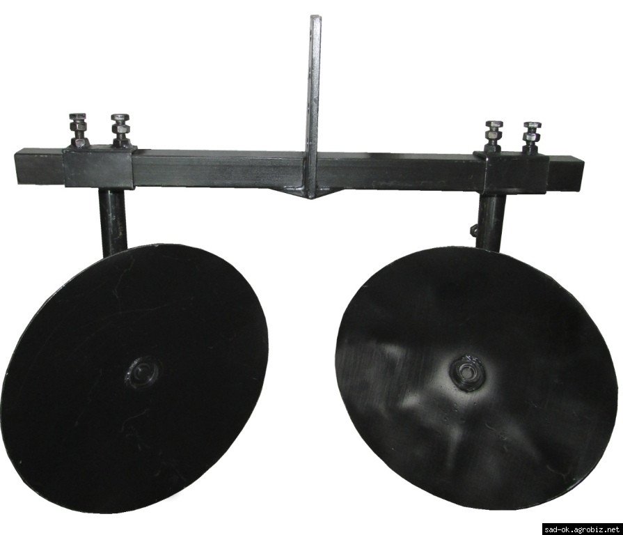 Окучник дисковый регулируемый (диаметр 360мм), на поперечной раме. Агрегатируется с мотоблоками при помощи сцепки регулировочной в комплекте с поперечной рамой, на подшипниках. Регулируемая глубина обработки, угол наклона и угол поворота дисков.