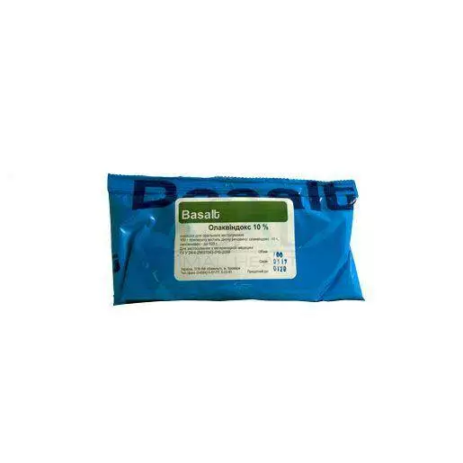 Склад та форма випуску: До складу входить діюча речовина олаквіндокс та наповнювач. 100 г препарату містить діючої речовини – 10 г (2(N-2 гідроксиметилкарбаміл) – 3 – метилхіноксалін – 1,4 – діоксину). Випускають в пакетах по 1,0 кг і 20,0 кг.
