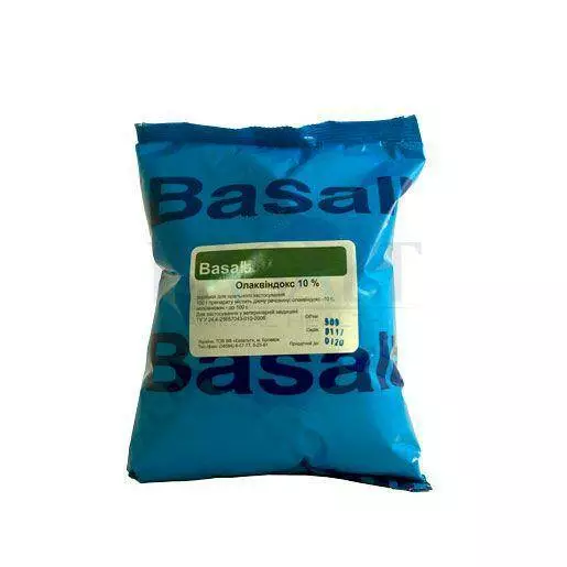 Склад та форма випуску: До складу входить діюча речовина олаквіндокс та наповнювач. 100 г препарату містить діючої речовини – 10 г (2(N-2 гідроксиметилкарбаміл) – 3 – метилхіноксалін – 1,4 – діоксину). Випускають в пакетах по 1,0 кг і 20,0 кг.