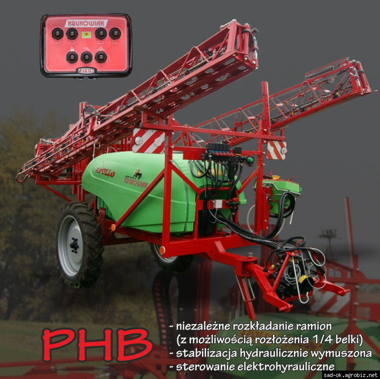 Балки типа PHB (15, 16, 18, 20 и 21 м) – балки полностью управляемые электрогидравлически, независимое складывание (асимметрично) вдоль оси опрыскивателя; все функций балки управляемые гидравлически (складывание, раскладывание, поднимание, стабилизация, а также блокада стабилизации) из пульта управления.