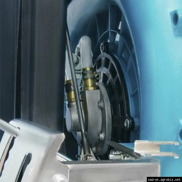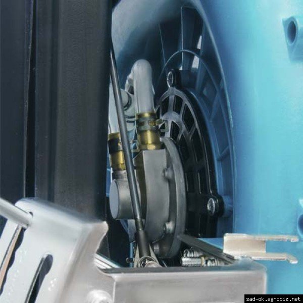 двухтакный двигатель мощностью 2 л.с. Масло и бензин нужно смешивать в пропорции, согласно инструкции. Двухтактные двигатели работают без масляного поддона, поэтому масло поступает внутрь и смазывает детали изнутри.