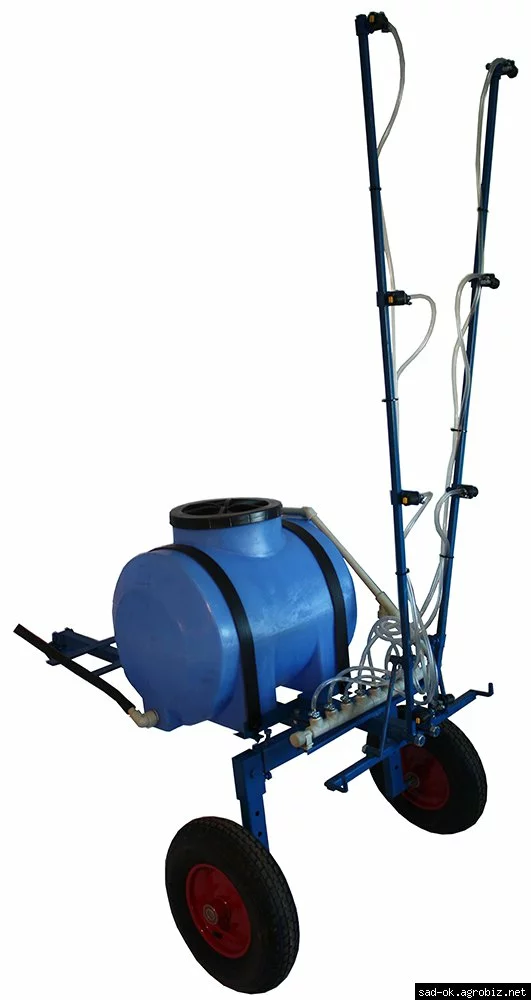 Ширина колеи и высота опрыскивателя регулируемые. Есть посадочные пластины для мотопомпы.
