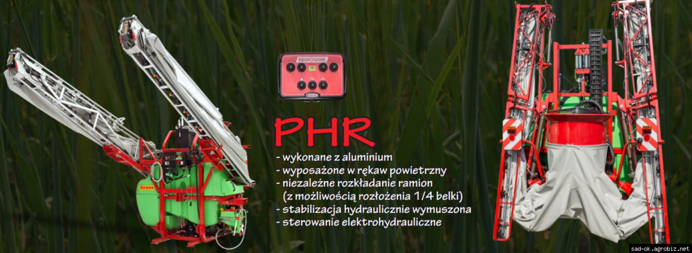 Балки типа PHR (15, 16, 18, 20 и 21 м) – балки с воздушным рукавом полностью управляемые электрогидравлически, складывание независимое (асимметрично) вдоль оси трактора; все функции балки, управляемые гидравлически (складывание, раскладывание, поднимание, стабилизация, а также блокада стабилизации) с управляющей панели.