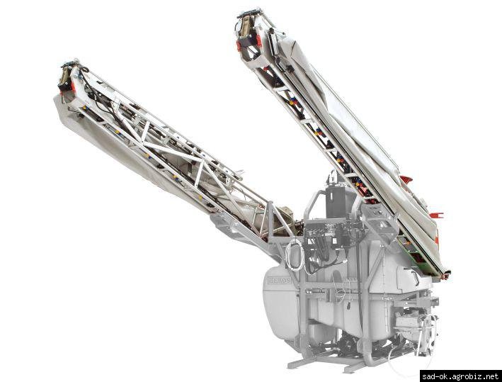 - Полевая балка шириной 12 м. Раскладываемая гидравлически независимо (односторонне). В стандарте серводвигатель к вынужденной стабилизации. Электрическое управление масловой гидравликой. Собственная гидравлическая система. Балка деленная на 5 секций, отклоняется вперед и назад после столкновения с препятствием, предохраняет оправы распылителей и распылители перед повреждением.