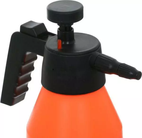 • Насос створює тиск лише за 2-3 качки. Струмінь робочої рідини розпорошується під невеликим тиском, а форсункою можна регулювати ступінь розпилення — від дрібнодисперсного, до струменевого. Це особливо важливо, якщо необхідно обробити або полити мініатюрні рослини (розсаду, квіти)