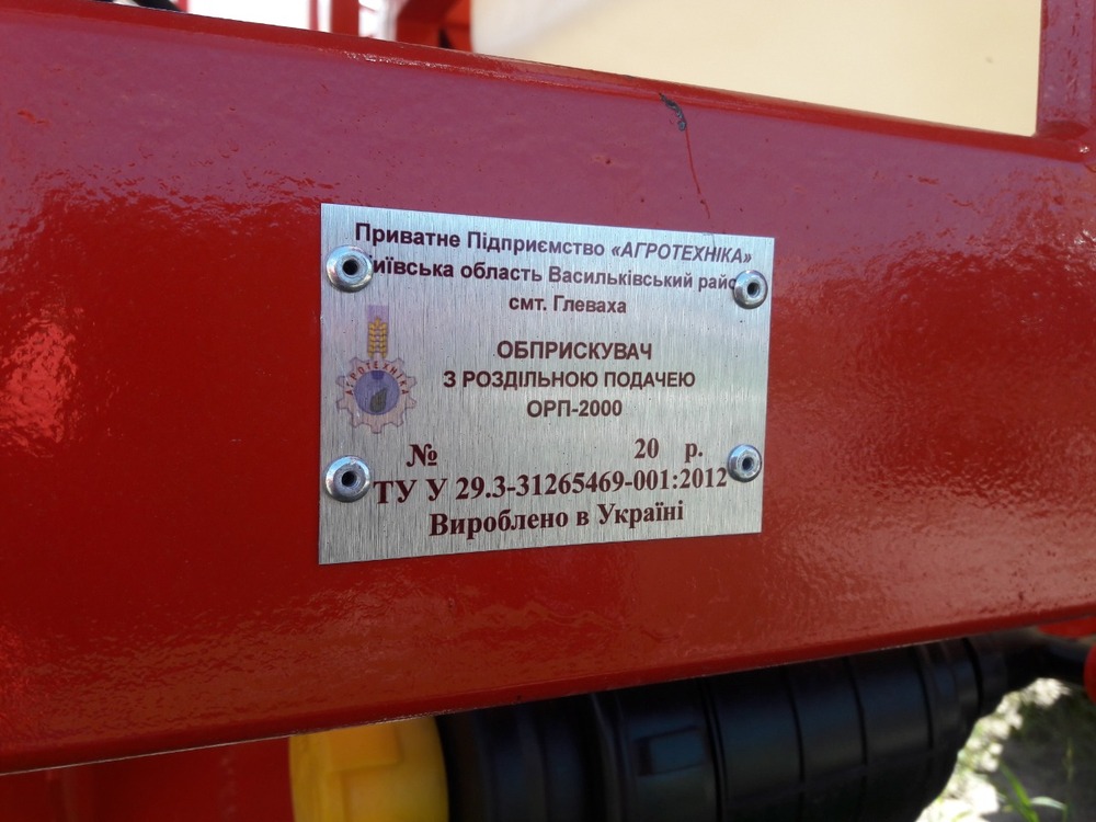 Все опрыскиватели укомплектованы итальянским оборудованием фирм Arag, Lechler, Imovilli pompe (пульт управления, форсунки, шланги, усиленные ступицы, фильтра, насос). Поставляются в собранном состоянии в комплекте с карданным